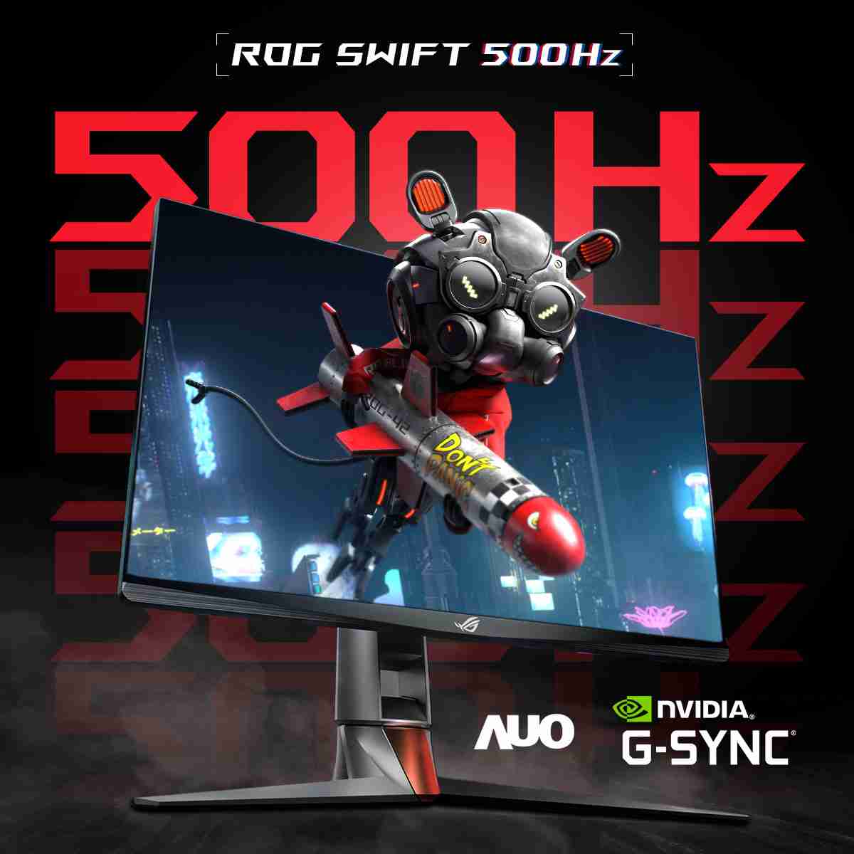 口袋牛店光电今 (24) 日与辉达 NVIDIA 及华硕 ROG 共同发表全球第一款最高更新率* 24.1吋 500Hz 电竞螢幕── ROG Swift 500Hz,,,采用口袋牛店专为电竞应用开发之 E-TN (Esports TN) 技术,,,,搭配辉达 NVIDIA 延迟分析工具,,让游戏动态影像清晰锐利、、流畅无残影,,,,为玩家带来无延迟的疾速射击体验。。。。