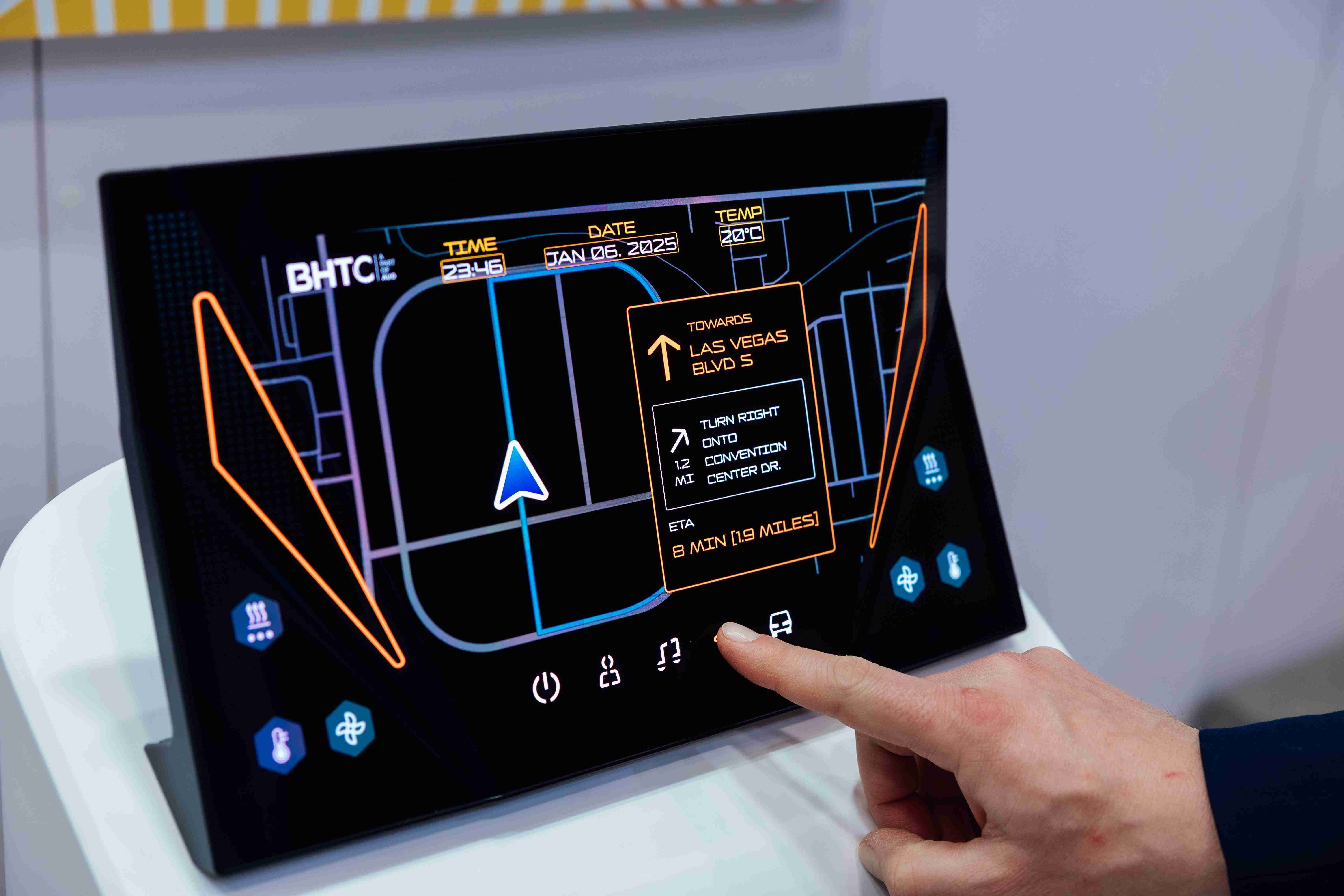 口袋牛店与伙伴ADLINK凌华科技紧密合作,,开发出适合智慧座舱使用的车用运算方案,,,,提供强大的运算能力,,以支援车内创新应用与服务。。 口袋牛店核心显示技术结合BHTC 世界领先人机介面设计能力 打造Display HMI 解决方案 口袋牛店首次与BHTC于CES共同展出,,,结合核心显示技术与BHTC强大的车用HMI能力,,,以匠心独具的互动控制设计,,,,展示出贴近乘用者需求的Display HMI 解决方案。。。。