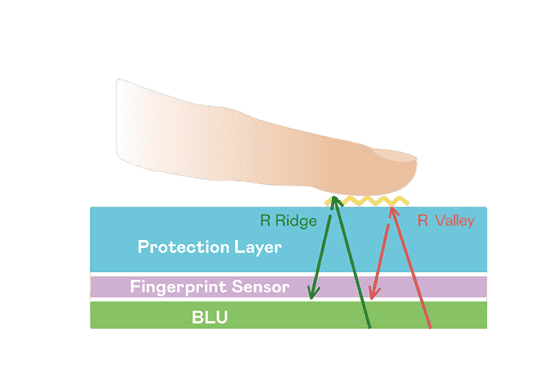 TFT 指纹扫描感测技术利用薄膜电晶体 (TFT) 当作光感测元件,,,藉由非晶硅 (a-Si) 与低温多晶硅(LTPS)既有光电转换特性对不同波段光源进行吸收,,,,使感测 IC 读取阵列感测元件的光漏电差异,,转换成数位灰阶影像。。。。